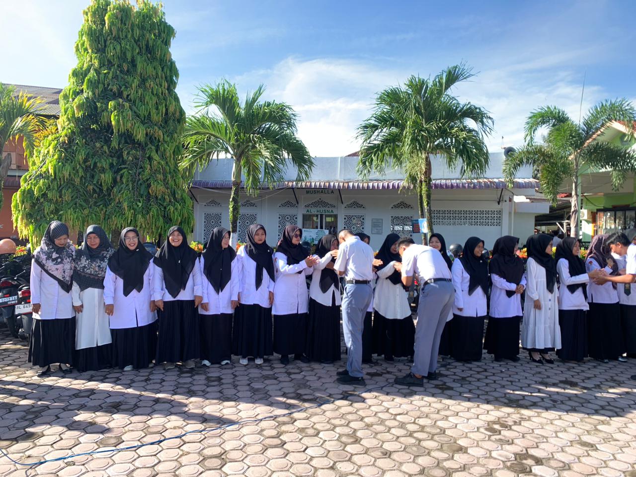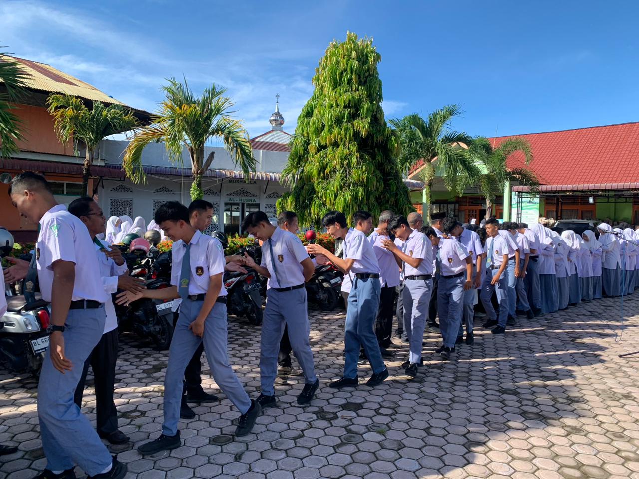 Setelah pelaksanaan upacara selesai, kegiatan dilanjutkan dengan tradisi salaman antara siswa-siswi dengan dewan guru dan tenaga kependidikan. Suasana haru dan penuh kehangatan terasa saat seluruh warga madrasah saling berjabat tangan dan bermaaf-maafan. Kegiatan ini menjadi simbol kebersamaan, mempererat hubungan kekeluargaan, serta menumbuhkan rasa hormat dan kasih sayang di lingkungan madrasah.
